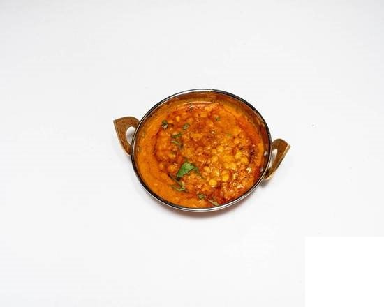 A simple, comforting dish of spiced chickpeas or beans, served with your choice of soft naan bread for a satisfying meal