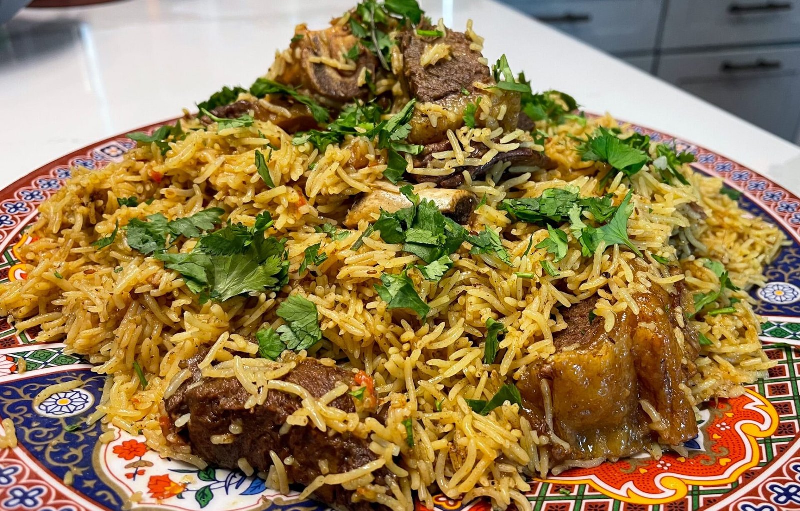 A beloved Kabul dish of fragrant rice, tender lamb, and a sweet touch of raisins and carrots