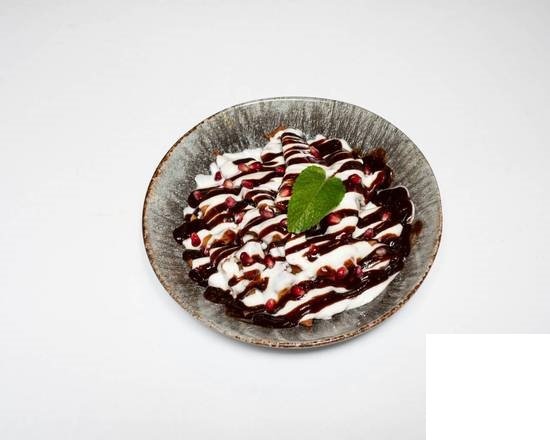 A sweet, flaky pastry made with layers of filo dough, chopped nuts, and honey syrup, offering a delightful balance of sweetness and crunch