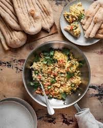 Afghan style eggs made with fresh tomatoes, herbs and spices, served with your choice of soft naan for a delicious and filling breakfast