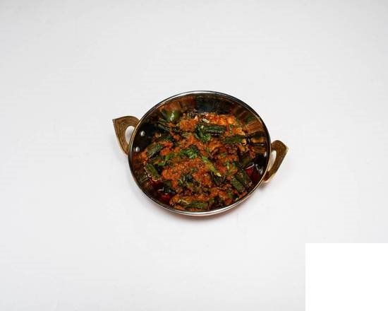 Tender okra simmered in a spiced tomato-based stew, offering a unique and comforting flavour